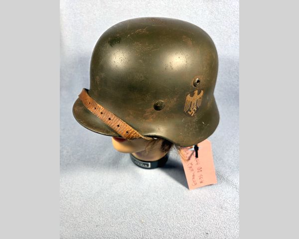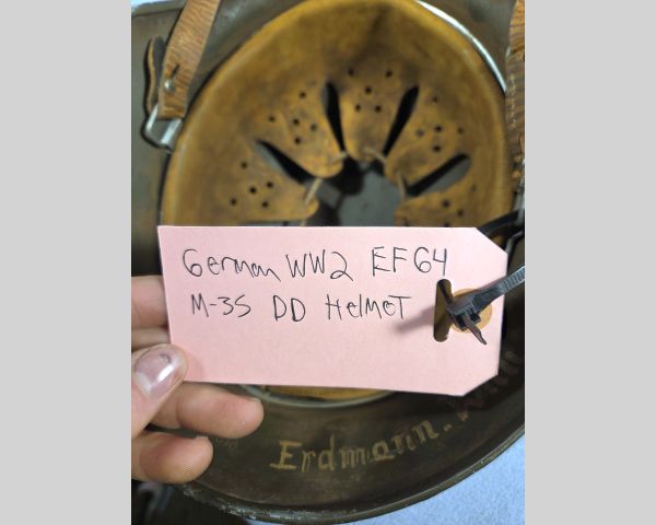 75 Ww2 Memorabilia German M35 DD army helmet w/ liner 1 $2,800 $1,200 50% Value assumes authentic M35 with both decals intact and original liner present. Double decal helmets command significant premiums over single decal or refurbished examples. Condition is critical - original paint, decal preservation (50%+ remaining), and liner completeness dramatically affect value. Authentic DD M35s range $2,000-$4,500 depending on condition, decal retention, and lot number visibility. Market has many reproductions and post-war refurbishments, so authentication is essential. If decals are 80%+ intact with clear details, value could reach $3,500-$4,500.