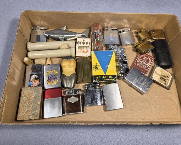 15 Antiques & Collectibles Risque vintage lighters 1 $75 $25 50% Risqué vintage lighters typically feature pin-up girls or figures that reveal more when the lighter is opened/heated. Value depends heavily on condition, maker (Evans, Occupied Japan marks add value), mechanism functionality, and specific design. Common examples: $15-40 each, rare/pristine examples with original boxes can reach $100-200. Assuming this is a lot of 2-4 common examples in average condition. Market is niche but steady among lighter collectors and Americana enthusiasts.