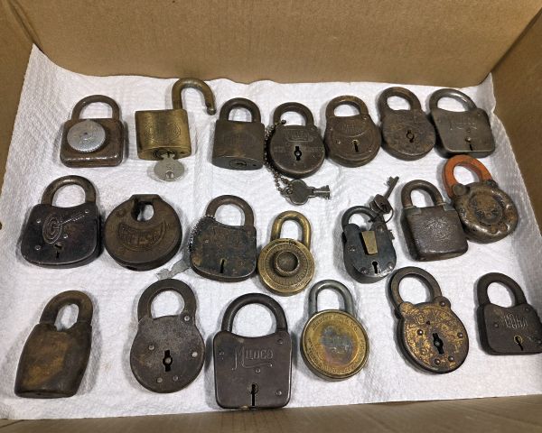17 Antiques & Collectibles Antique padlocks 1 $150 $50 50% Valuation highly dependent on specifics: rare railroad locks (Adlake, Keen Kutter) or unusual mechanisms can fetch $50-500+ each. Common vintage padlocks: $10-30 each. Logo locks, miniatures, or pre-1900 examples increase value significantly. Condition and keys present are critical factors. This estimate assumes a typical mixed lot of common vintage locks.
