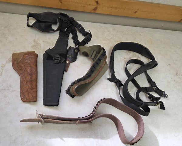 104 Guns/Ammo/Sporting Items gun slings, ammo belts, holsters 1 $150 $50 50% Value highly dependent on quantity, condition, and specific items. Military surplus leather items (WWII-Vietnam era) can bring $20-75 each if marked and in good condition. Modern synthetic items worth $5-20 each. Quality leather holsters for collectible firearms (Bianchi, Safariland, custom makers) could add significant value. Without photos or item count, assuming 5-10 mixed pieces of average condition and desirability.