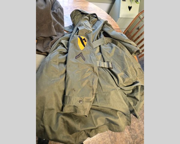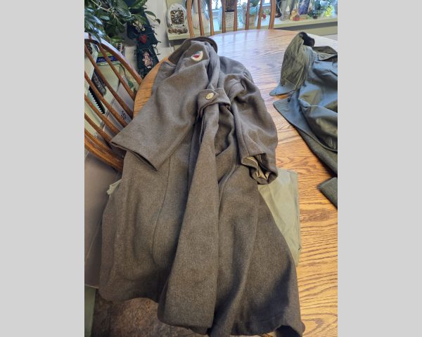 Value assessment based on visible items: The garrison cap with multiple patches is the highlight piece ($200-300 alone if authentic WWII). Gas mask with bag ($50-80), various patches and insignia ($100-200 collectively), canvas equipment and belts ($100-150), and miscellaneous items. Condition appears fair to good. Value heavily dependent on authenticity verification - some items may be post-war or reproductions. The collection format and variety suggests genuine veteran estate items. Individual patch identification would significantly affect value - some specialist or unit patches can be worth $50-100+ each. Conservative estimate given photo limitations. |