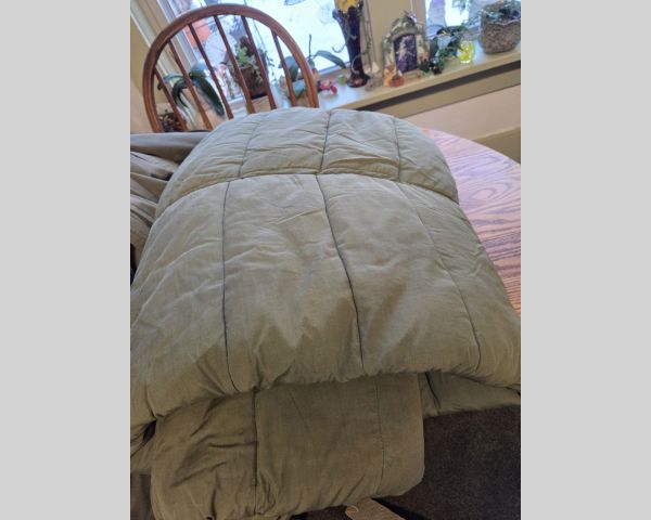 WWII-era U.S. military shelter half tent in good condition with original components. The tan/khaki canvas with 'U.S.' marking, wooden tent poles, stakes, and rope appear complete. These are common surplus items but collectible when complete with all components and in decent condition. Value depends heavily on condition, completeness, and any visible date stamps or manufacturer markings. Complete sets in good condition typically retail $100-150, while incomplete or poor condition examples sell for $30-60. The plastic storage container is modern and not original. |