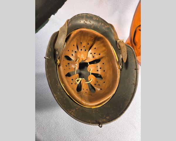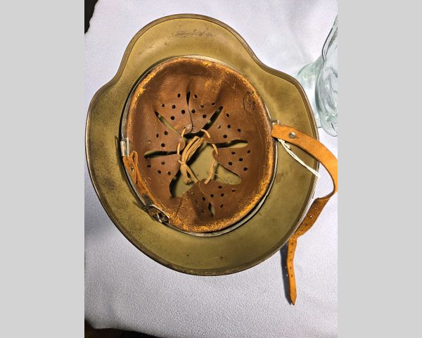 M35 double decal helmets are highly collectible. The apple green paint, visible decal remnants (particularly the national eagle on the side), ventilation holes, and original liner configuration are consistent with authentic WWII German Army helmets. Condition shows appropriate wear and patina. The presence of both decals (double decal) significantly increases value over single decal or reissue helmets. However, authentication should be done in person as WWII German helmets are frequently reproduced. Value assumes authenticity. Condition appears good with honest wear, some paint loss, and rust spotting typical of age. Complete with liner and chinstrap adds value. |