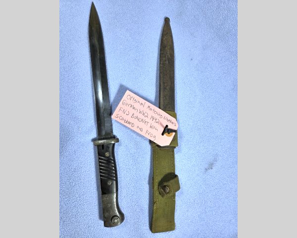WWII bayonets typically range $100-300 each depending on condition and rarity. German K98 bayonets are most common ($150-250), Czech VZ-24 variants similar range. Condition appears fair to good based on images. The parade/dress bayonet could add value if authentic. Total collection value estimated at $400-500 retail. Condition issues, missing parts, or reproduction elements could significantly lower value. Market for WWII militaria remains strong among collectors. |