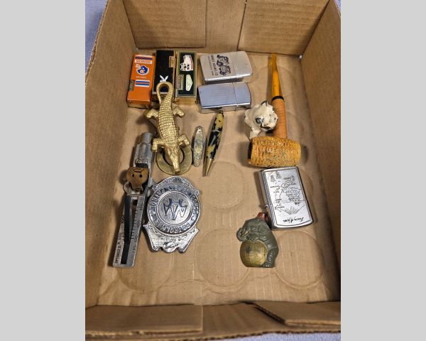 Value assessment based on visible quantity (approximately 40-50+ lighters) and variety. Risqué/novelty lighters typically sell for $5-25 each retail depending on condition and rarity. Some premium pieces visible (military badges, figural designs) could be $20-50 individually. Condition appears mixed with wear. Bulk lots typically sell below individual piece value. Key value drivers would be any rare Zippo designs, quality figural pieces, or unusual advertising lighters. The risqué category has a niche collector market but isn't as strong as vintage Zippo or premium table lighters. |