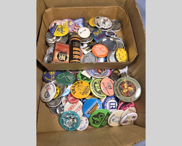 Hesston buckles are collectible rodeo memorabilia produced annually from 1974-2000. Individual Hesston buckles typically sell for $15-40 each depending on year and condition. The 1997 Champion buckle and specialty buckles add value. Mixed condition visible. Total collection retail value estimated at $400-500. Dealer would pay $150-200 for lot to resell individually. |