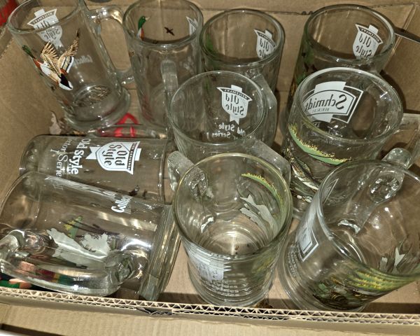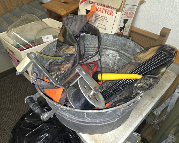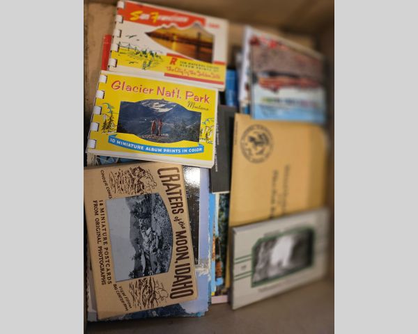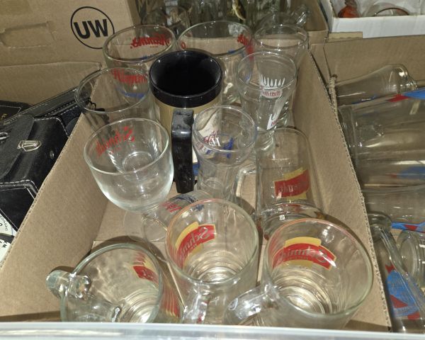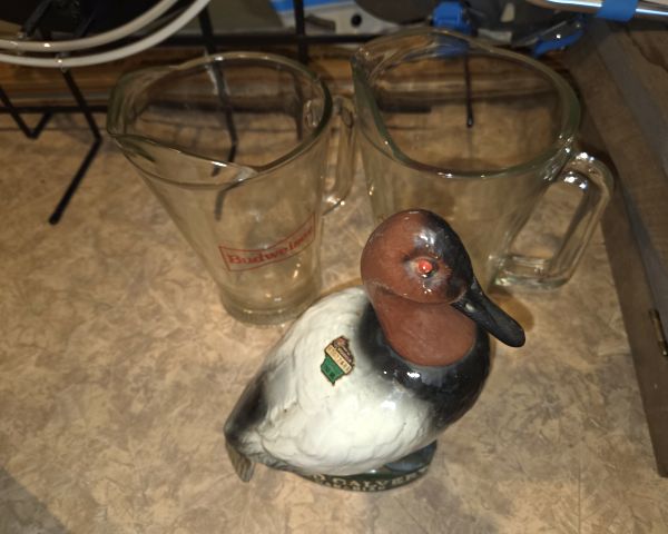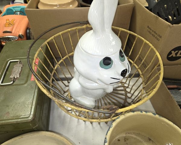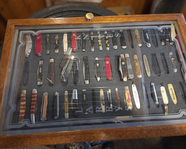 Advertising playing cards are collectible but common. Value depends heavily on brand recognition and condition. Schrade Knives items have modest collector interest. Individual decks typically sell for $5-15 each retail. The basket appears to contain 4-6 items. Condition appears good but not mint. These are steady sellers in the $8-15 range per deck at antique shops. |