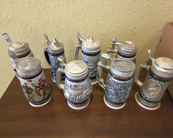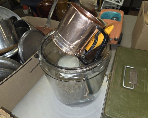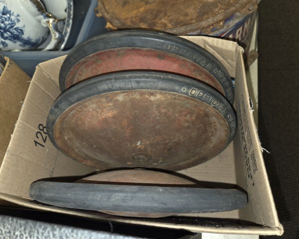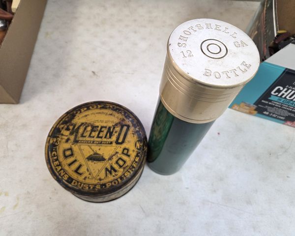 Railroad collectibles have steady niche market appeal. The blue enameled can with visible graphics is more desirable ($100-150 retail) than the plain rusted can ($40-60). Condition issues (rust, enamel wear) reduce value. As a lot, $150-200 retail is reasonable. Dealers would pay $60-90 for resale inventory. |