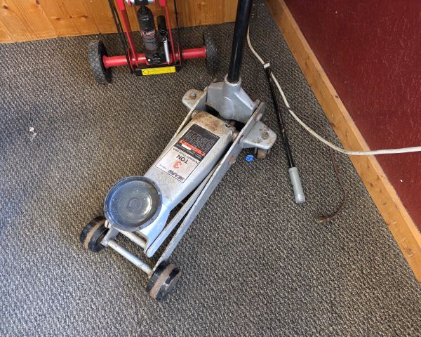 Used 3-ton floor jacks in working condition typically sell for $50-100 retail. Sears/Craftsman jacks were mid-grade quality. Value depends heavily on working condition, hydraulic seal integrity, and whether it holds pressure. The visible wear and garage storage setting suggest it's used but potentially functional. New comparable jacks sell for $150-200, but used tool market is soft. At auction, these often sell for $20-50. |