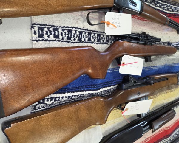 213 Guns Marlin 1892 .22lr, lever action 1 $850 $400 50% The Marlin 1892 is a collectible lever-action .22 rifle. Value depends heavily on condition, bore quality, and completeness. From the image, the metal shows patina/wear and the wood appears to have honest wear. These typically sell for $600-1200 depending on condition. This example appears to be in fair to good condition with visible wear, placing it in the mid-range. Dealer buy price would be 40-50% of retail. If the bore is good and action functions properly, it could reach higher values among Marlin collectors.
