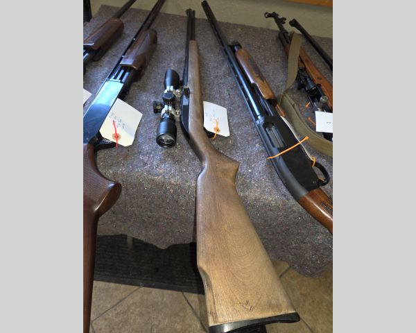 208 Guns Ruger 10/22 .22cal. semi-auto 1 $400 $200 50% The Ruger 10/22 is one of the most popular .22 rifles ever made. Base rifle value is $250-350, with the scope adding $50-100 depending on quality (appears to be a decent optic from images). Condition appears good with nice wood finish. Standard configuration without special features. Retail with scope typically $350-450, used market $300-400. Dealer would pay $150-250 depending on scope quality and exact condition.