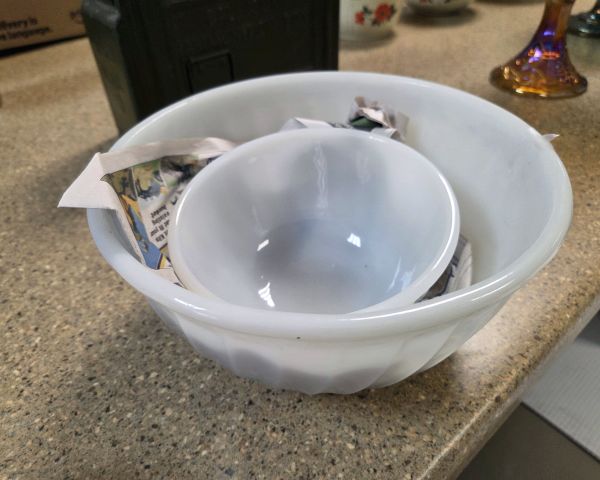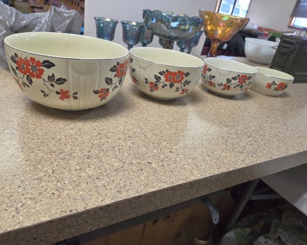 236 Antiques & Collectibles fancy plates & cups 1 $45 $15 50% The Hall China nesting bowls are the most valuable items in this lot, typically selling for $20-30 as a set. The remaining teacups and plates appear to be mixed patterns and makers, mostly decorative rather than collectible sets. Individual pieces show wear and are common patterns. Total retail value for the lot would be $40-50, but mixed lots typically sell below individual piece values at auction.