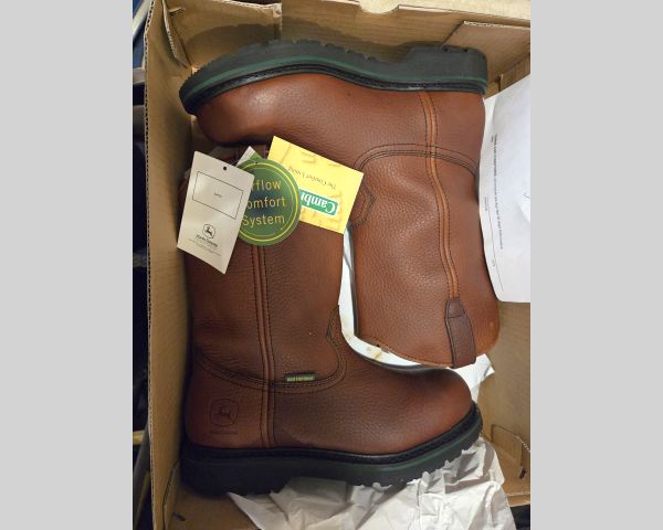 261 Household & Furniture / Tools Men size 8 John Deere leather boots, new 1 $180 $65 50% John Deere branded work boots retail between $150-220 new depending on model. These appear to be genuine leather pull-on style with safety features. Being new with tags is positive, but size 8 is smaller than average men's size which may limit buyer pool. At auction, work boots typically sell for 30-50% of retail unless there's strong local demand for this brand. Condition appears excellent based on visible tags and packaging.