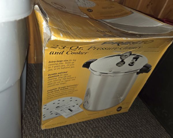 269 Household & Furniture / Tools Presto 23q pressure canner /cooker 1 $85 $35 50% Presto 23-quart pressure canners are popular home canning tools. New retail price is $150-180. Used value depends heavily on condition, completeness (gasket, pressure gauge, safety plug), and whether it's been tested. In original box suggests good condition but box shows wear. Without seeing the actual canner or knowing if all parts are present and functional, valuation is conservative. If complete and functional, could be worth $80-120 used; if missing parts or untested, $30-50.